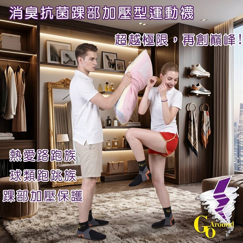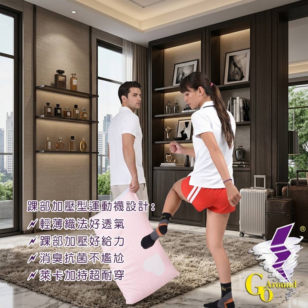 [GoAround夠有勁護具]消臭抗菌踝部加壓型運動襪設計: